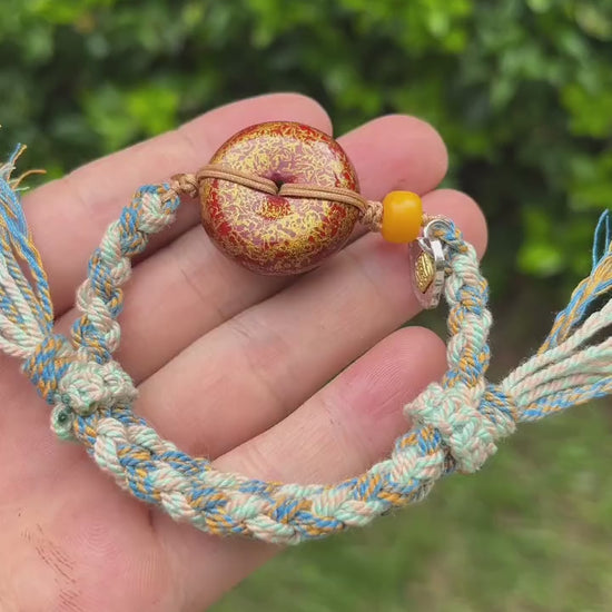 Handmade Red-Gold Xipi Lacquer “Peace Amulet” Bracelet | Adjustable Woven Cord | Oriental Talisman Jewelry